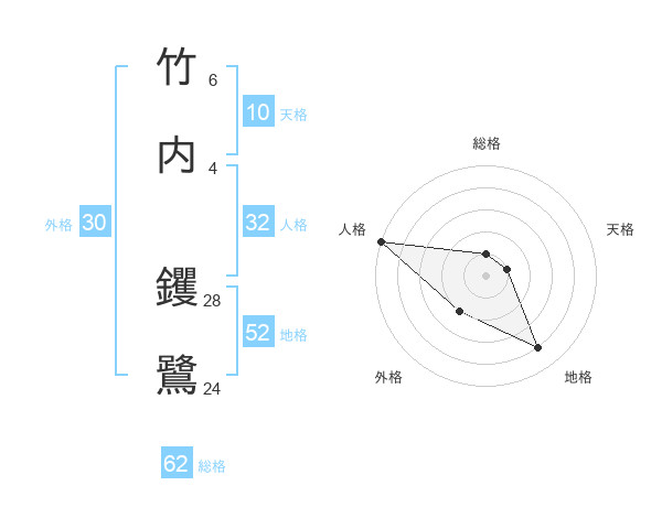 竹内 钁鷺さんを姓名の画数から五運を鑑定