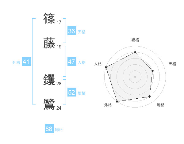 篠藤 钁鷺さんの総格は88画の4点!