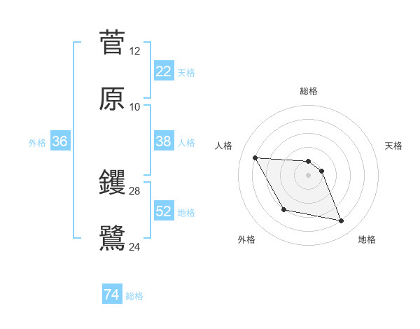 菅原 钁鷺さんの総格は74画の1点!