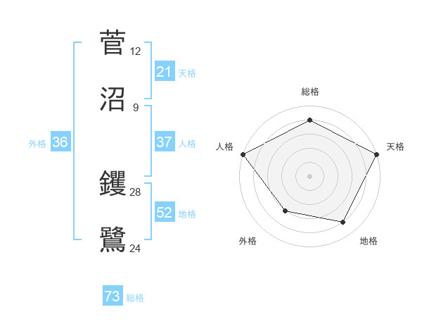 菅沼 钁鷺さんの総格は73画の4点!