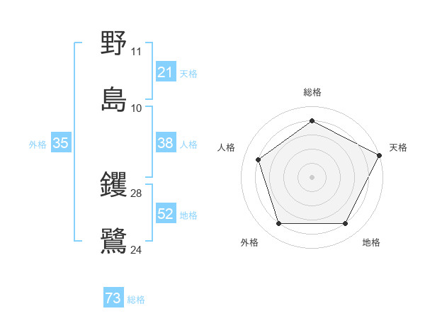野島 钁鷺さんを姓名の画数から五運を鑑定