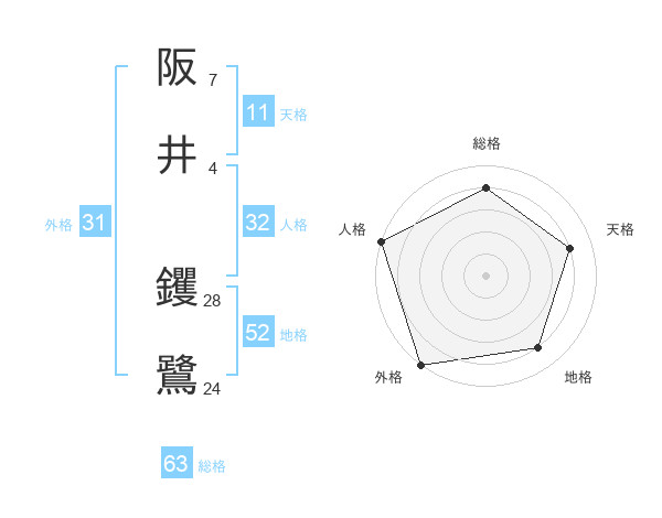 阪井 钁鷺さんの総格は63画の4点!