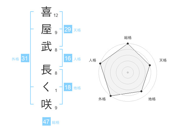 占い結果は姓名判断である以上、良い場合も悪い場合もありますが、決してお名前を誹謗中傷するものでなく、画数の自動計算によって得られたものです。また、本サイトの検索によって得られた鑑定結果で、第三者を誹謗中傷したり名誉を棄損するような行為を禁じます。