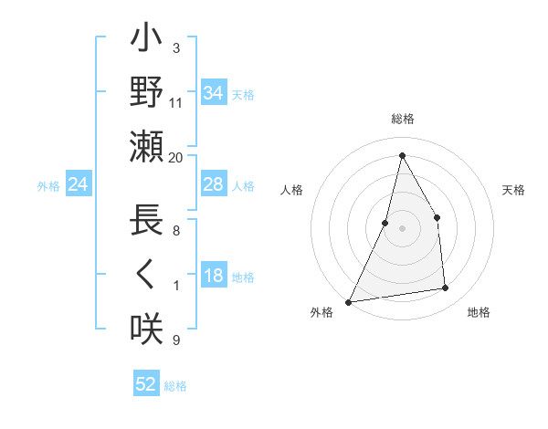 小野瀬 長く咲さんの総格は52画の4点