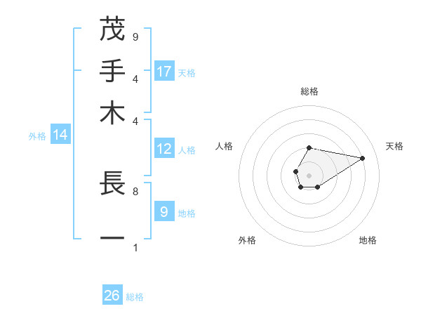 茂手木 長一さんを姓名の画数から五運を鑑定