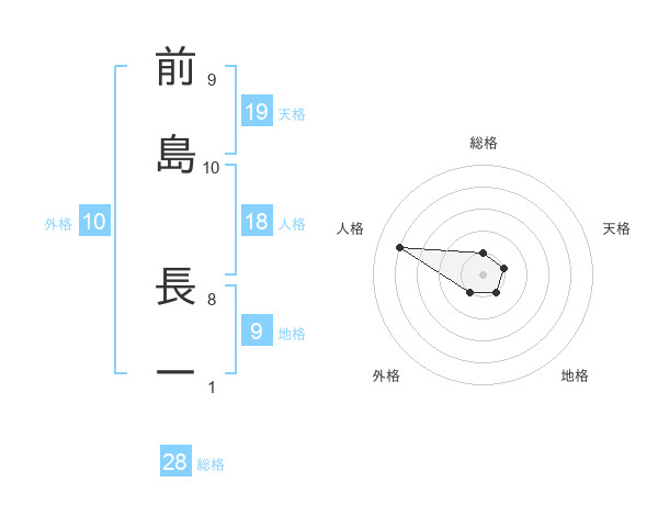 前島 長一さんの総格は28画の1点!