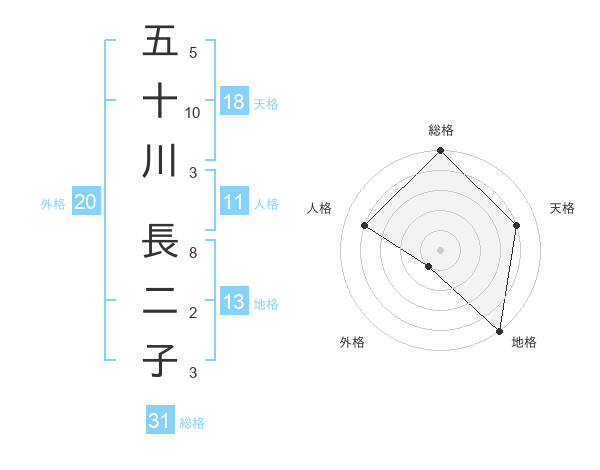 五十川 長二子さんの総格は31画の5点