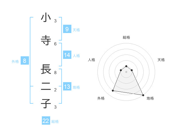 小寺 長二子さんの総格は22画の1点!