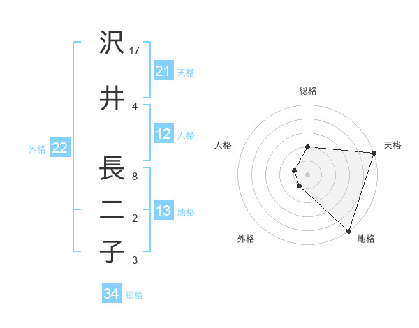 沢井 長二子さんを姓名の画数から五運を鑑定