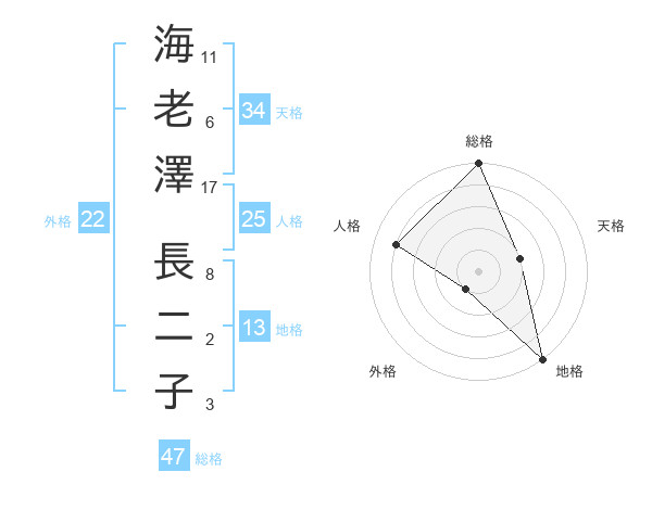 海老澤 長二子さんを姓名の画数から五運を鑑定