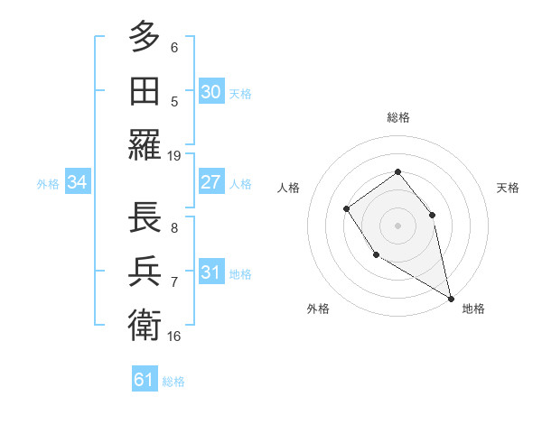 多田羅 長兵衛さんを姓名の画数から五運を鑑定