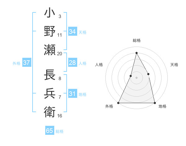 小野瀬 長兵衛さんを姓名の画数から五運を鑑定