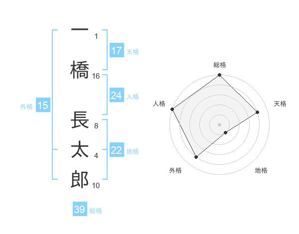 一橋 長太郎さんの外格は15画の4点!