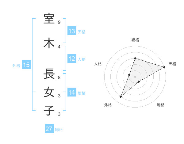 室木 長女子さんの総格は27画の3点!