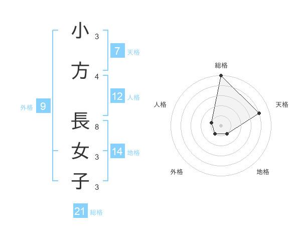 小方 長女子さんの総格は21画の5点
