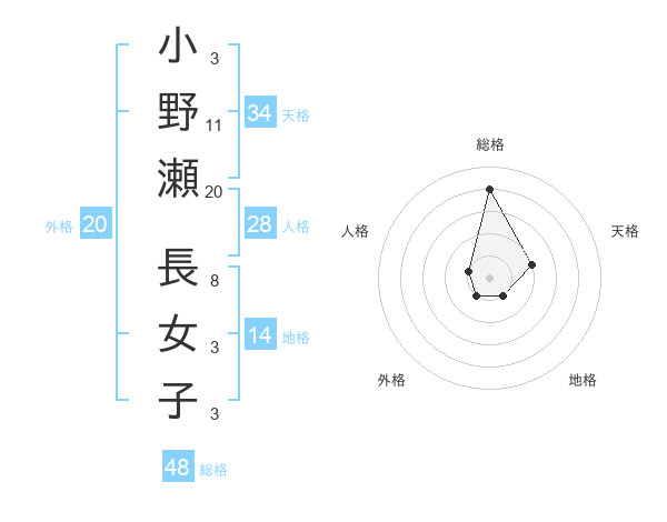 小野瀬 長女子さんを姓名の画数から五運を鑑定