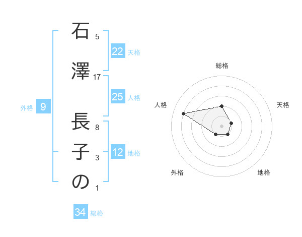 石澤 長子のさんの総格は34画の2点!
