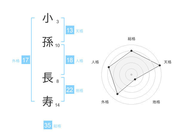 小孫 長寿さんの総格は35画の4点!