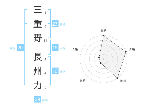 三重野 長州力さんを姓名の画数から五運を鑑定