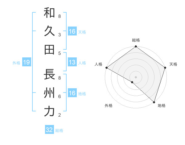 和久田 長州力さんの総格は32画の5点!