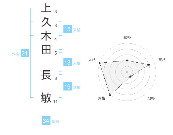 上久木田 長敏さんを姓名の画数から五運を鑑定