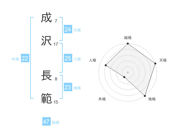 成沢 長範さんの総格は47画の5点!