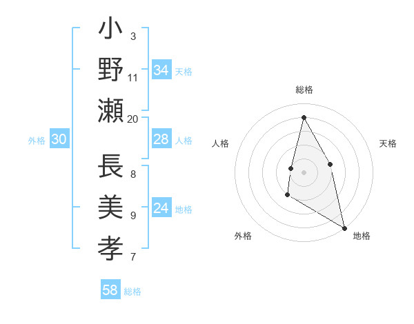 小野瀬 長美孝さんを姓名の画数から五運を鑑定