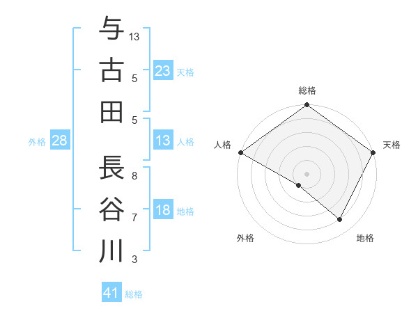 与古田 長谷川さんを姓名の画数から五運を鑑定