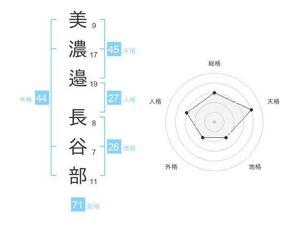 美濃邉 長谷部さんの総格は71画の3点!