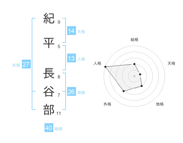 紀平 長谷部さんの総格は40画の2点!