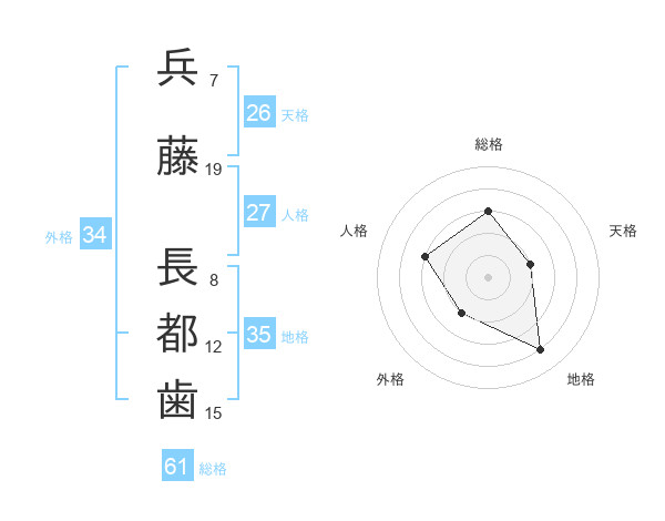 兵藤 長都歯さんを姓名の画数から五運を鑑定