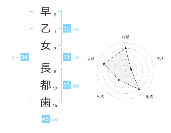 早乙女 長都歯さんを姓名の画数から五運を鑑定