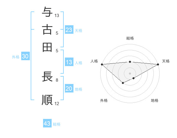 家系が持つ宿命的な運勢を表します。祖先から受け継いだ苗字ですので自分の力が及びません。家柄を象徴します。