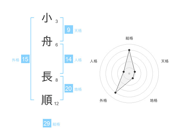 小舟 長順さんの総格は29画の4点!