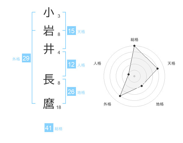小岩井 長麿さんを姓名の画数から五運を鑑定