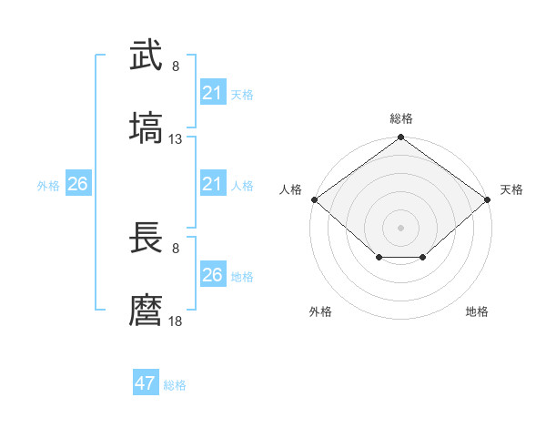 武塙 長麿さんの天格は21画の5点!