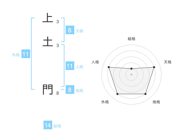上土 門さんの天格は6画の4点!
