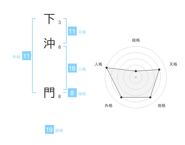 下沖 門さんの天格は11画の4点!