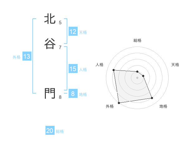 北谷 門さんの外格は13画の5点!