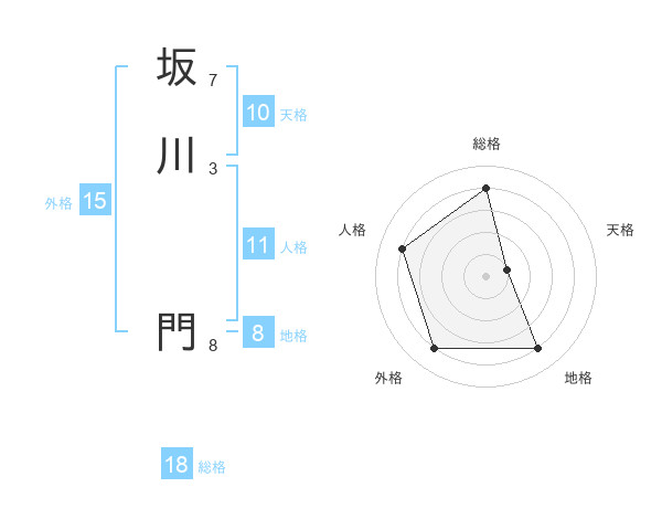 坂川 門さんの総格は18画の4点!