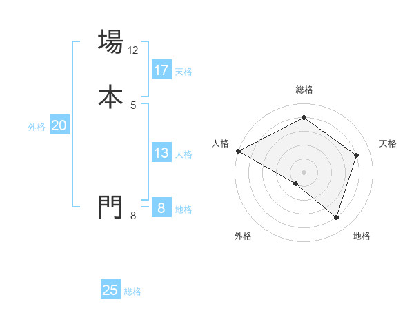 場本 門さんの天格は17画の4点!