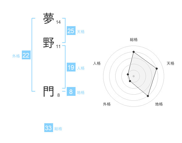 夢野 門さんの総格は33画の4点!
