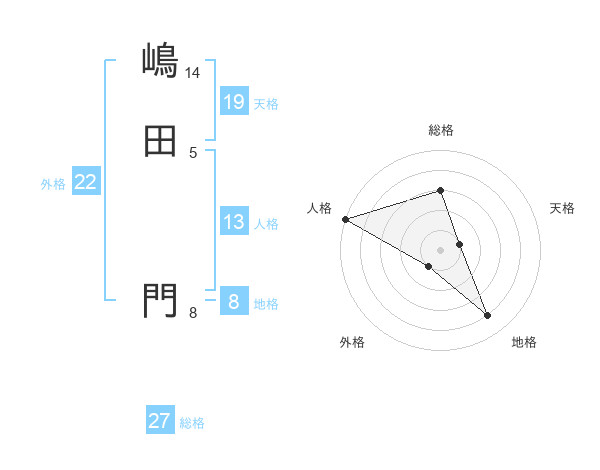 嶋田 門さんの総格は27画の3点!