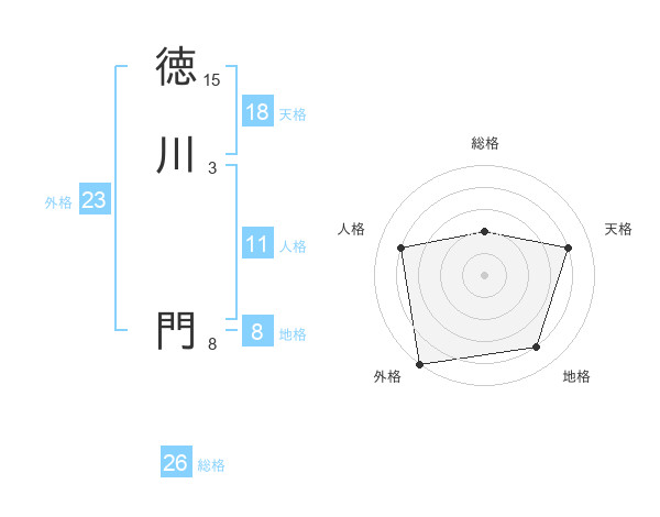 徳川 門さんを姓名の画数から五運を鑑定