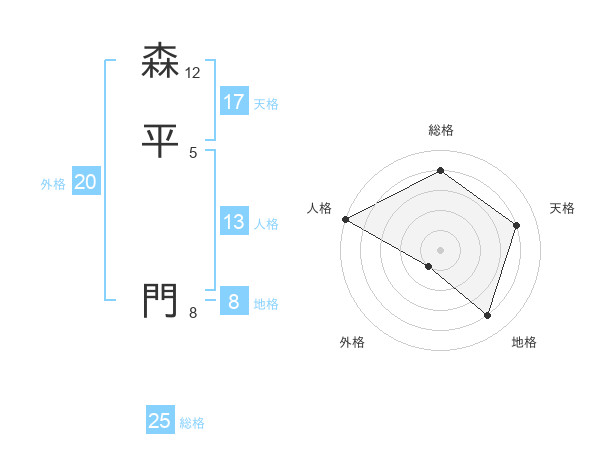 森平 門さんの総格は25画の4点!