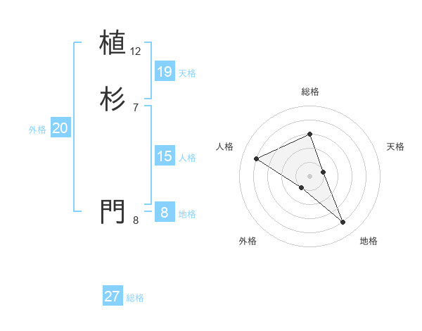 家系が持つ宿命的な運勢を表します。祖先から受け継いだ苗字ですので自分の力が及びません。家柄を象徴します。