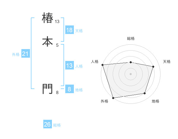 椿本 門さんの外格は21画の5点!