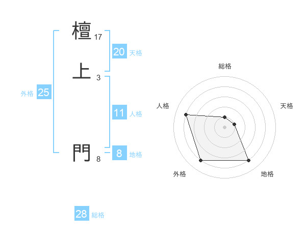 檀上 門さんの外格は25画の4点!