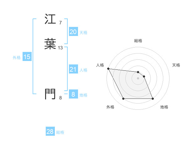 江葉 門さんの総格は28画の1点!