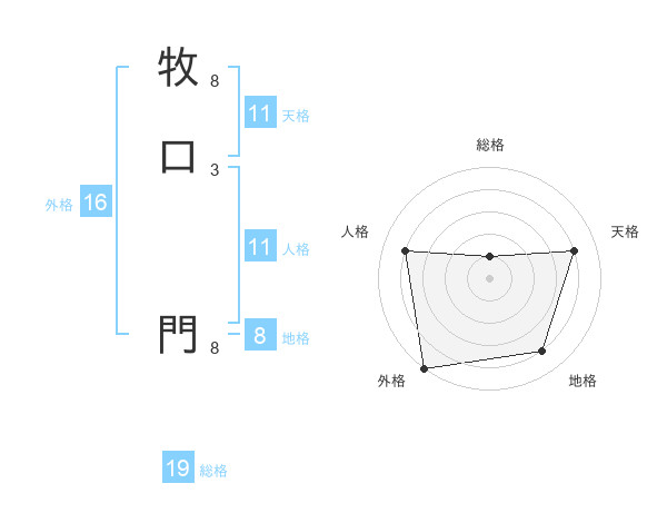 牧口 門さんの天格は11画の4点!